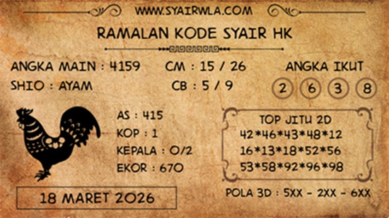 SYAIR LOPE TOGEL HONGKONG, 18-Mar-2026