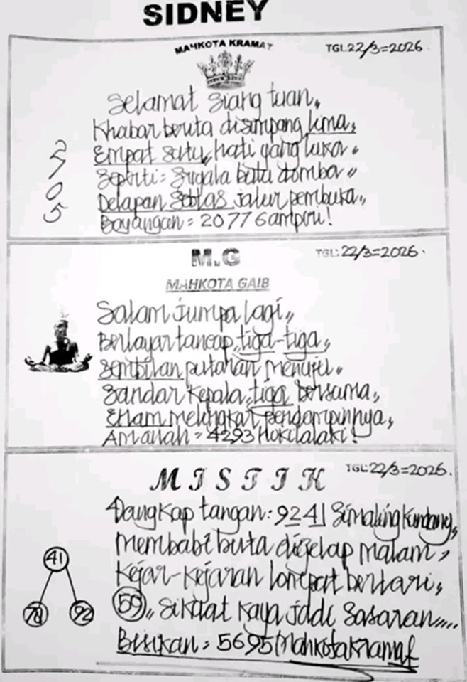 SYAIR LOPE TOGEL SYDNEY, 22-Mar-2026