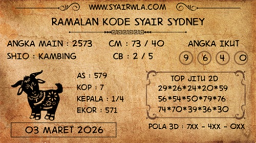 SYAIR LOPE TOGEL SYDNEY, 3-Mar-2026
