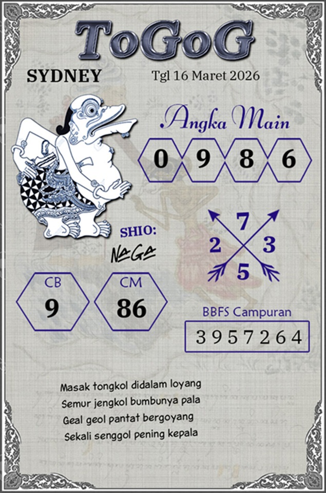 SYAIR LOPE TOGEL SYDNEY, 16-Mar-2026