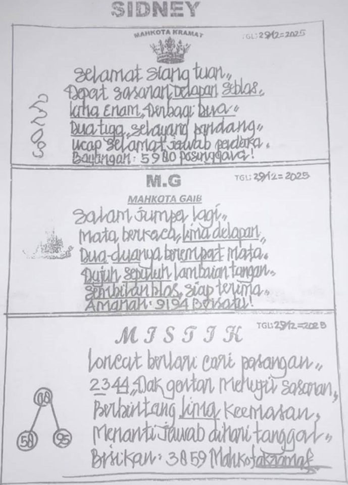 SYAIR LOPE TOGEL SYDNEY, 29-Des-2025