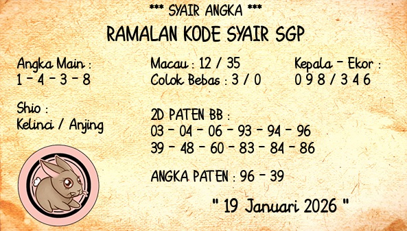 SYAIR LOPE TOGEL SINGAPORE, 19-Jan-2026